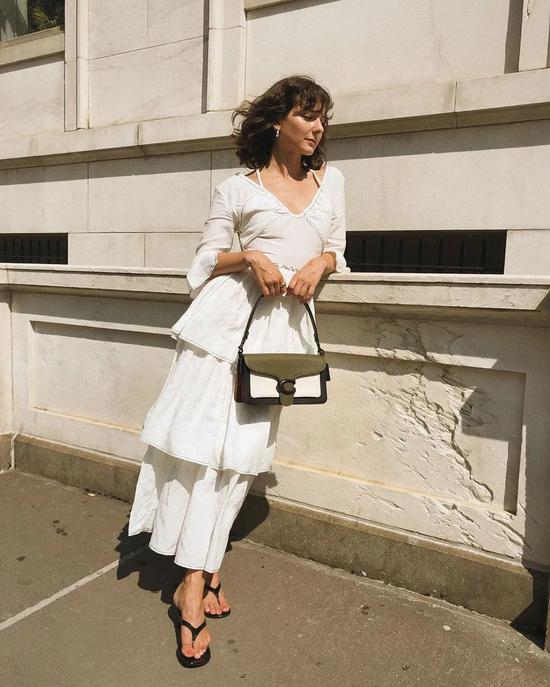如果看了上面的,只把小白裙想成是度假专属,那你可就错了。小白裙对各种场合的适配能力,强大到你想象不到。而且同一条裙子,出片风格可以做到迥异!不信的话,看下图👇