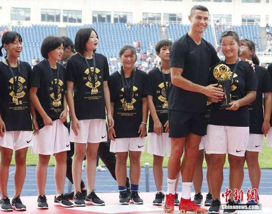 资料图:2018年北京市校园足球特色校(传统校)联赛在国家奥林匹克体育中心体育馆落幕。葡萄牙著名足球运动员C罗前来观战并