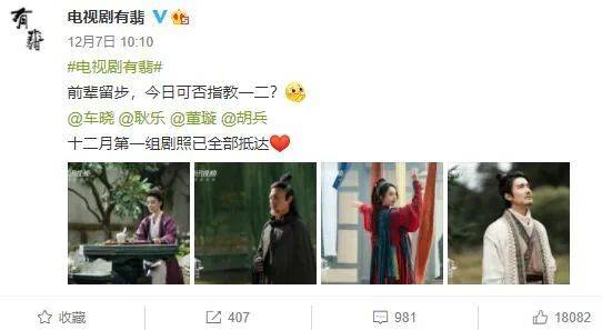 官方一直没给信,但是最近开始@电视剧有翡官博的更新频率倒是蹭蹭上涨。