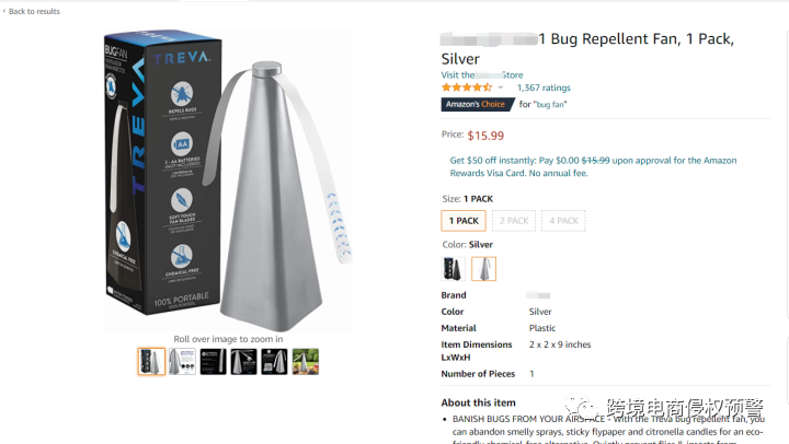 下面这多功能扇叶驱蝇器,目前是亚马逊美国站的Amazon'sChoice,现有留评数1,367,售价为15.99美金: