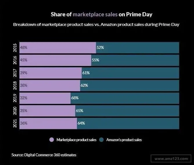 Digital Commerce 360指出,在为期两天的Prime Day期间,第三方卖家销售额增长了12.0%。亚马逊自有品牌销售额增长了5.3%,这是第三方卖家销售额连续第二年增长快于亚马逊自有品牌。