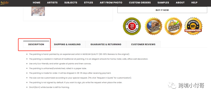 建议:描述中可以增加一些视觉元素进去,比如说将文字用一张图片显现出来(产品详情页长图),也可以加一些视频链接进来,使Listing描述更加丰满,某种程度上可能会增加转化
