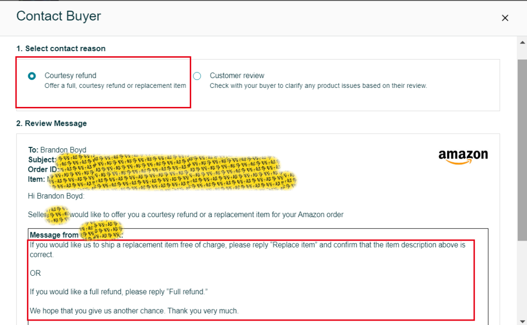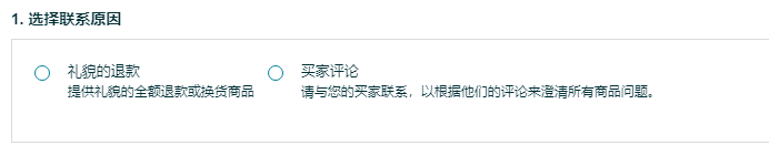 此时页面上会让选择联系原因,有2个,一个是礼貌的退款,一个是买家评论。