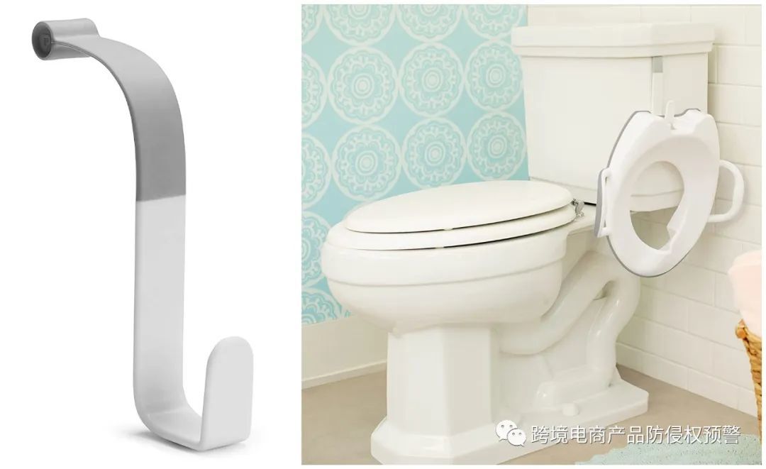 如贵司也想进入这个细分领域,除了需要就外观造型进行一定修改之外(避免外观专利侵权),我还建议这款产品的功能构造(创意)不要跟以上那款"便盆环挂钩"。因为这款"便盆环挂钩"是存在在先美国发明专利的!