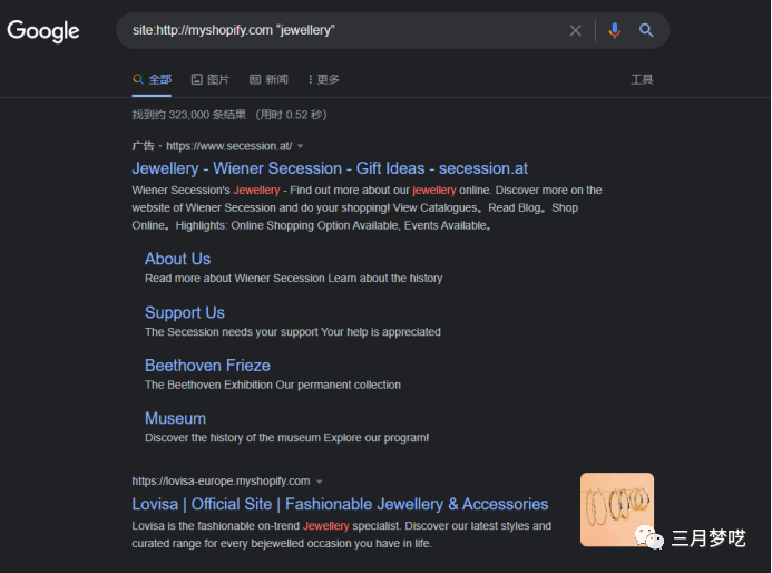 利用site:是因为shopify给所有的卖家的初始域名是二级域名,,但是很多卖家并没有去解析网站的域名,而是用了shopify给的二级域名。