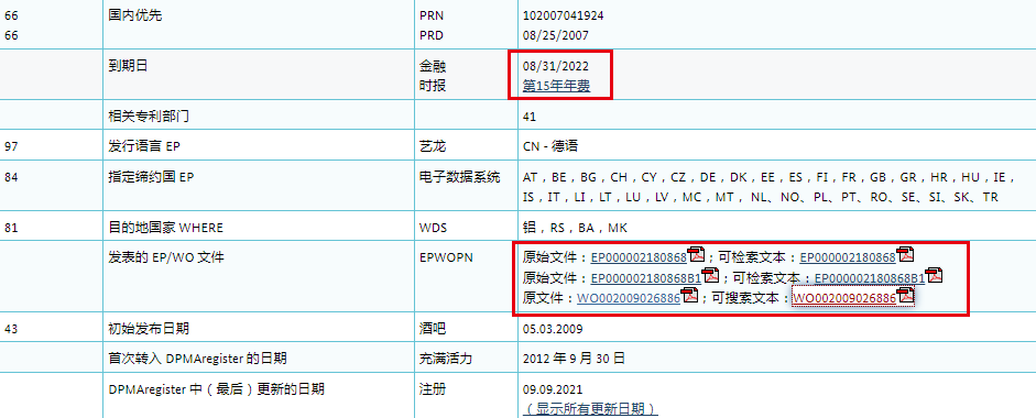 我们可以看到,这项专利提交了PCT国际专利申请,不过美国地区的专利已经因为没有缴年费而导致失效,目前在欧洲仍然有效。