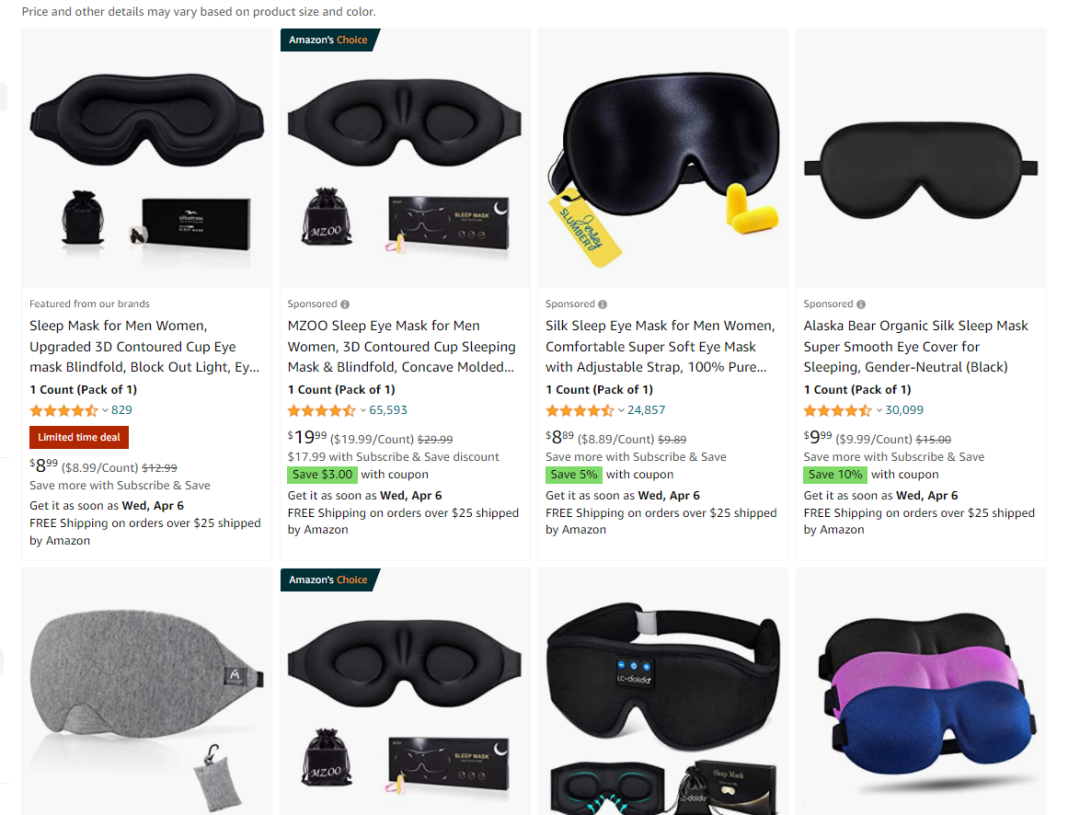 我们以"葫芦娃"中的一款眼罩产品为例,分别展示下它的网页端和移动端的搜索结果对比: