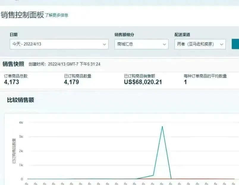 据一位卖家晒出的"战绩图",可以看出卖家的这款产品平时不怎么出单,一下子就出了4000多单,销量直接涨了10倍以上。