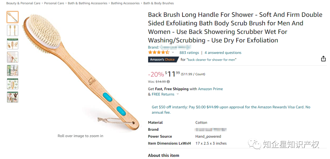 今天在亚马逊看到一款长柄双面沐浴刷,它是美亚站的Amazon'sChoicefor "back cleaner for shower for men",售价11.99美金,留评887颗星。