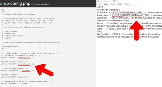 右键选择记事本方式打开,把后台引号里的 数据库名 用户名 密码复制到本地同名文件里,保存。