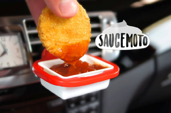 Saucemoto® Dip Clip由Milkmen Design LLC的团队设计和开发,为了方便人们在汽车上吃薯条、蘸番茄酱而发明的,通过各种社交媒体渠道获得了超过 5000 万的观看次数。它的外形更像是杯架,放置于汽车的通风口,可以在上面放番茄酱,不至于因为刹车等情况弄脏车。官网:Saucemoto® – 用于番茄酱和蘸酱的车内蘸料夹。