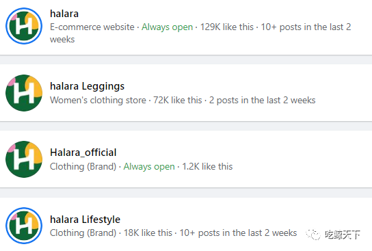 - 官方账号@halara,约12.6万粉丝,日常发文主要推荐自家Facebook商店的畅销品类;