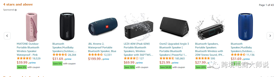 值得注意的是,相关商品有时候只会有一行。所以一般情况下,商品下面会出现两排广告位。一排是四星广告位,一排是相关商品。而这两排广告位,正是我们做SP定位广告时,产品广告所会出现的位置。我们在前面的文章也讲过,关键词下产品的排名代表了不同的流量。而详情页广告位也代表了不同的流量等级。同时如果能排在第一页,那么流量也是不一样的。所以详情页广告来看,影响曝光的有两个方面:第一个就是你挂在哪个asin下面。Top产品已经拥有了类目的大部分流量与曝光,所以挂在这类产品下面,会有较大的精准曝光,但是同时首页的出价也是比较贵的。