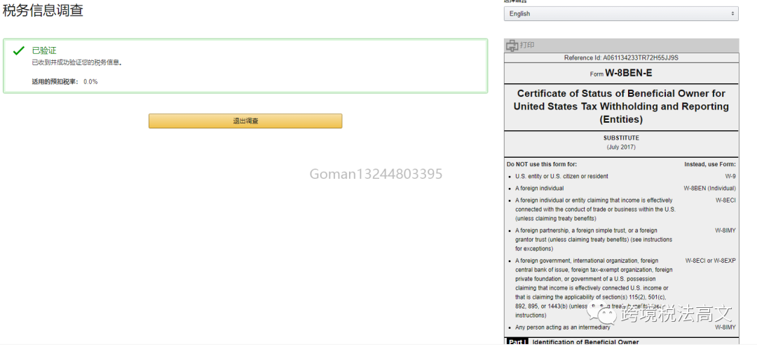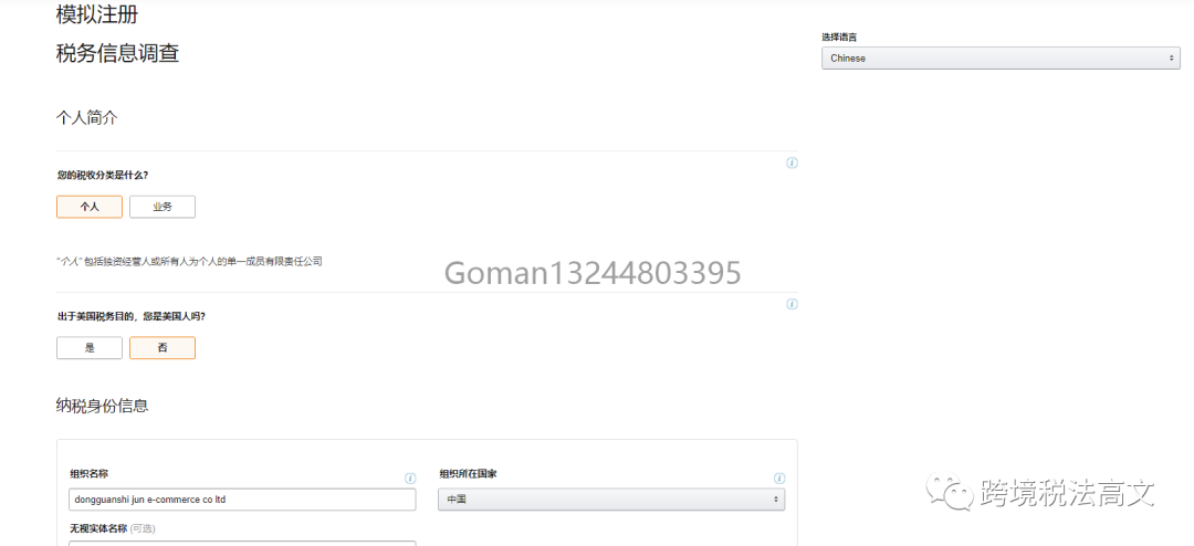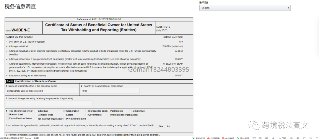 问是否是美国人,都填否就好了。接下来选择受益人性质-公司或个人,按提示填写 。