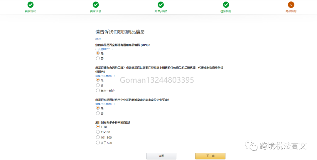 亚马逊会列举一些问题请您回答,借此了解您的产品性质和开始销售时计划的数量。基于这些信息,亚马逊会推荐适合您账户的相关工具和信息。