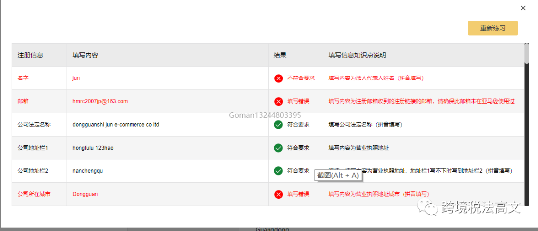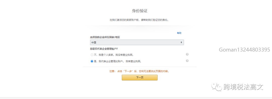 1)请用英文填写营业执照地址,电话号码(必须是要没有注册过亚马逊的)