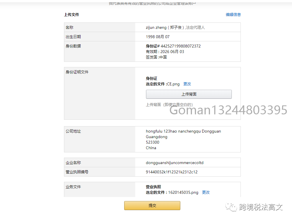 • 公司卖家需要的材料有:营业执照 +法定代表人身份证
