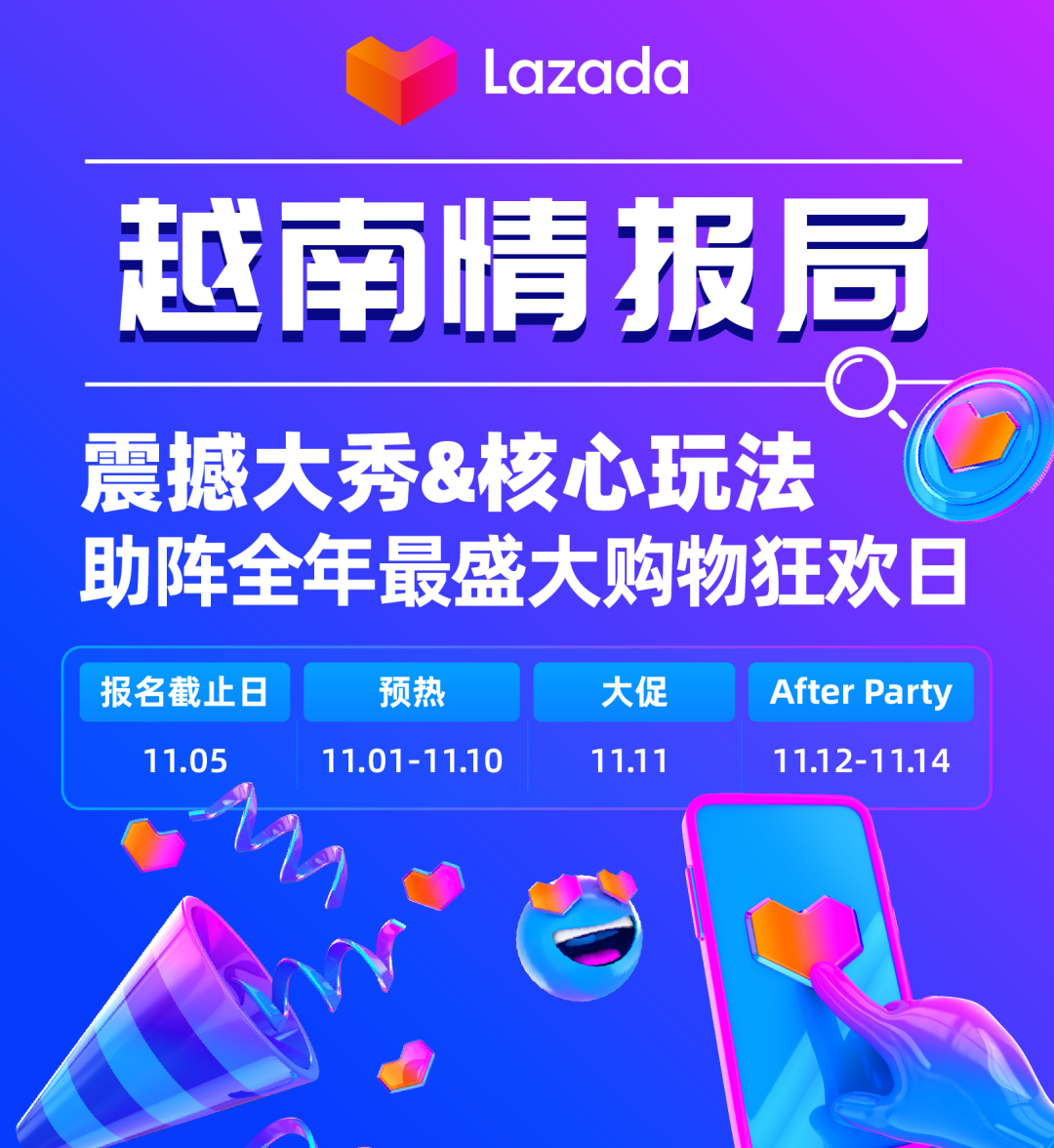 今年双十一大促(11.11大促),越南站点有什么亮点,玩法又有哪些,商家如何做准备?本篇文章小编通过介绍Lazada多元的引流造势举措,剖析大促核心玩法&消费者参与机制,解读行业热点这四部分,带您一同探索精彩缤纷的Lazada越南站双十一大促。