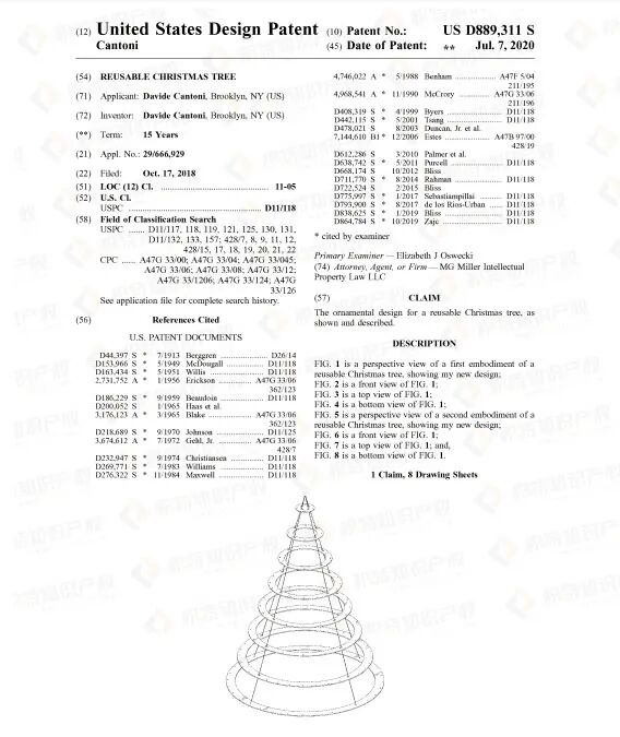 圣诞树是不可或缺的圣诞装饰品,外形虽看似大同小异,但却有不少外观专利: