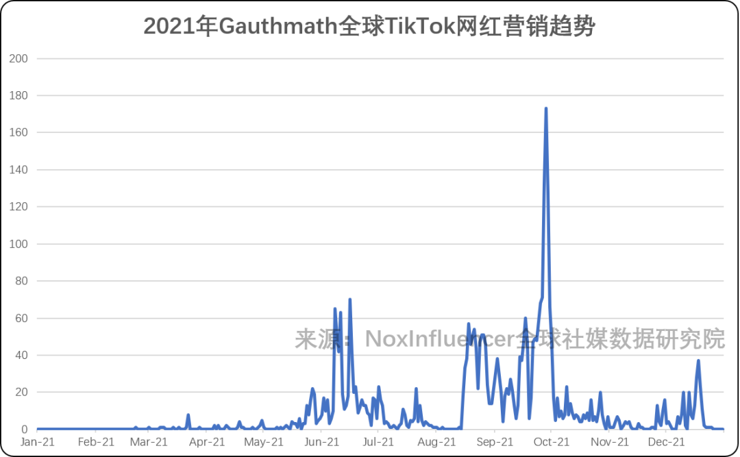 字节教育类App,在TikTok做了什么?字节跳动旗下的大力教育,于2020年底在海外上线高中数学"拍照搜题"App——Gauthmath。根据Gauthmath官方消息,上线至今一年多全球下载量已经超过一亿,在Google Play下载次数已经达千万。据霞光社消息,Gauthmath在教育类应用的榜单上,曾在50多个国家占据榜首,而在美国教育App市场,也曾一度位列前十。作为一款教育应用,Gauthmath主要针对数学学科,帮助初高中学生解决数学问题。用户拍下数学题目后,Gauthmath经过AI识别分析,辅以人工导师审核,得出解题过程。这和国内各类成熟的"拍照搜题"App大同小异,如好未来的"题拍拍"、字节面向国内学生的"闪电搜题"、"小猿搜题"等。国内拍题软件在2021年上旬一度霸占教育App活跃用户榜单,而随着"双减"政策一锤定音,所有"拍照搜题"应用及带有此类功能的工具全部不同程度地遭到整改,非下架,即转型。国内留给在线教育的空间逐渐收窄的同时,字节教育发力海外,Gauthmath的成功出海展现了他们想要抓住全球在线教育持续旺盛的需求。截至目前,Gauthmath在谷歌应用商店排名,在马来西亚、印尼 、越南等东南亚多地区均占据榜首,在美国、英国、葡萄牙等欧美地区,则持续在10名左右徘徊。Gauthmath取得的出色成绩,与他们在全球社交媒体的流量布局密不可分。字节跳动依靠以自家产品TikTok为核心的流量生态网络,拥有了其他App没有的流量推广优势。Gauthmath官方曾在TikTok发起一场名为"Put Your Fingers Down"的活动,获得5万名印尼用户的互动,是这款软件抢占印尼市场的关键网红营销动作。根据NoxInfluencer全球社媒数据研究院不完全统计的TikTok的营销热度走势来看,Gauthmath2020年底上线后,于2021年5月开始通过TikTok网红营销,发力布局社交媒体流量。我们可以从2021年全年TikTok上的内容热度看出,Guathmath在TikTok上运作的网红营销事件。全年Gauthmath相关的TikTok内容总数达到3,539,相关网红总数2,589个。总触达量达到了50.41亿,总互动数达到12.21亿(视频播放量、评论、点赞、转发的总和)。首先,Gauthmath的2021年TikTok的营销热度走势如下图所示,其高峰集中在6月和9月,可以推断出9月是他们和TikTok网红合作最为频繁的一个月,9月总内容达到1,353个。而6月和9月,在很多东南亚国家分别是放假和开学的时间段。学生在处理假期作业和开学要学习高年级课程期间,刚好是对课外辅导工具的需求旺盛时期。