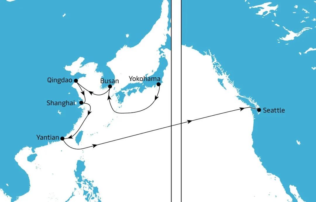 2021年11月,由于北美港口拥堵严重,洛杉矶/长滩港口等待靠港的天数过长,鉴于港口拥堵造成船舶船期延误,造成船舶运力搁置,马士基在2021年11月将其TP9服务取消挂靠西雅图港口,重新开辟一条单独往返西雅图的TP7航线,以提高船舶的运力效力。