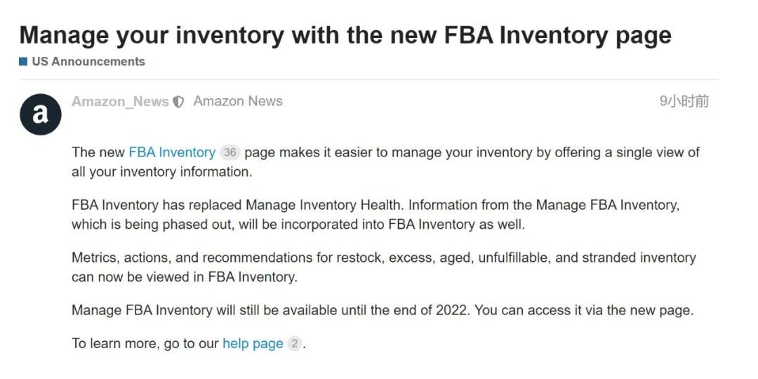 据悉,新FBA库存页面已更新管理库存状况。即将被逐步淘汰的"管理FBA库存"中的信息也将被纳入新FBA库存页面。