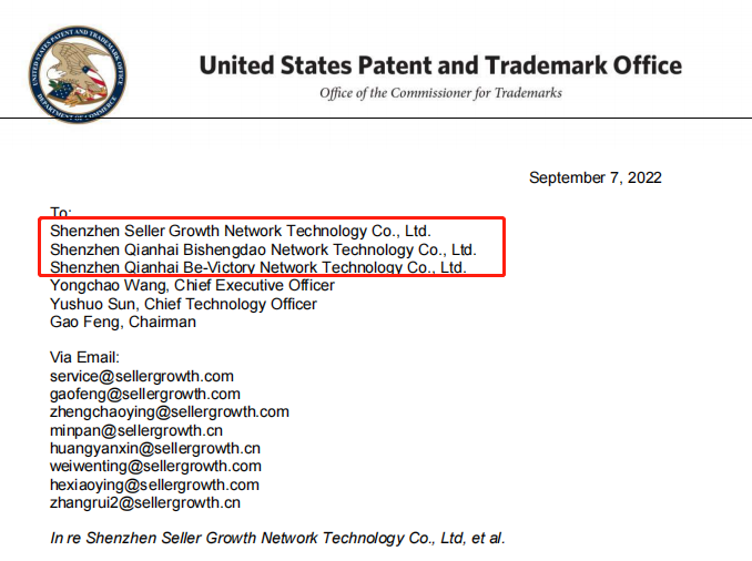 (3)从美国专利商标局的所有申请和/或注册的数据库中删除与被申请人相关的通信信息;