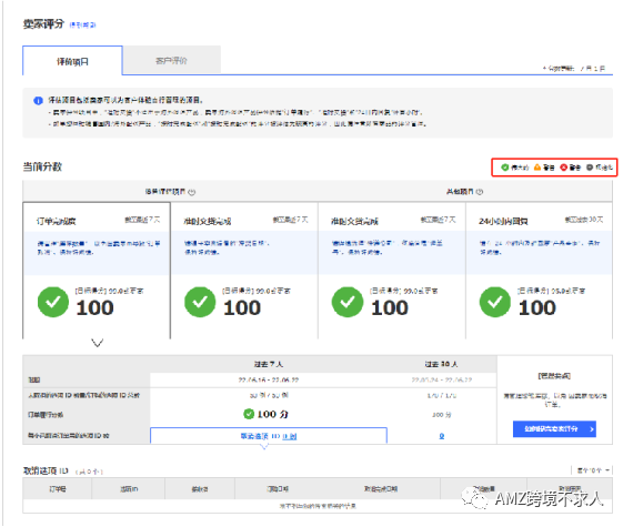 1、首先我们的卖家分数由订单履约、按时配送、按时发货、24小时内答复来衡量。