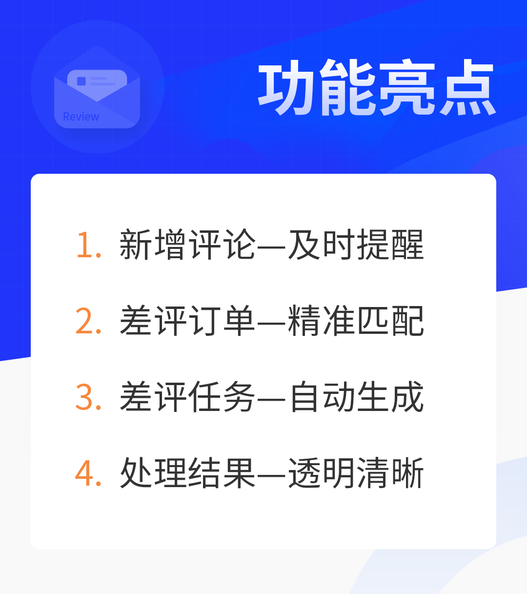 积加ERP全新升级客服Review模块能够帮卖家及时了解评论变化,高效精准匹配差评留评订单,自动生成差评处理任务且提供多种联系买家方式,提升删改差评成功率,从而提升商品转化率。