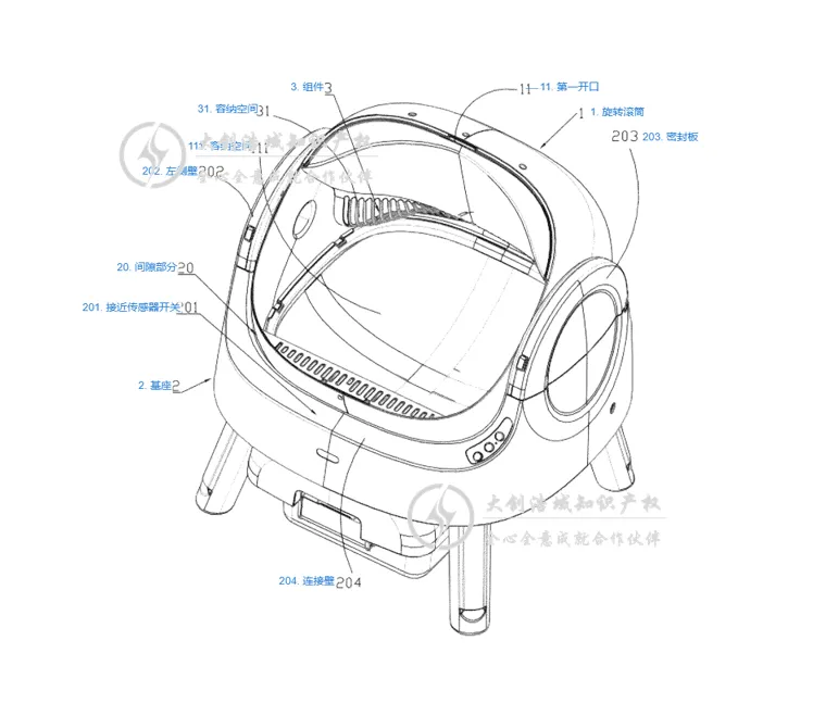 经查,我们发现该#自清洁猫砂盆 目前已有美国发明专利,其含有独立权利要求1、16,我将其概括解读如下: 权利要求1(基础系统架构)